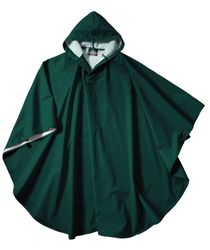 The Youth Pacific Poncho is crafted from high-quality, waterproof New Englander® Polyurethane bonded to a knit backing to provide additional fabric strength. It features heat-sealed seams and hood with drawstrings. Snap placket at neck and side snap closure under arms provide added wind/rain protection. Comes with matching bag.